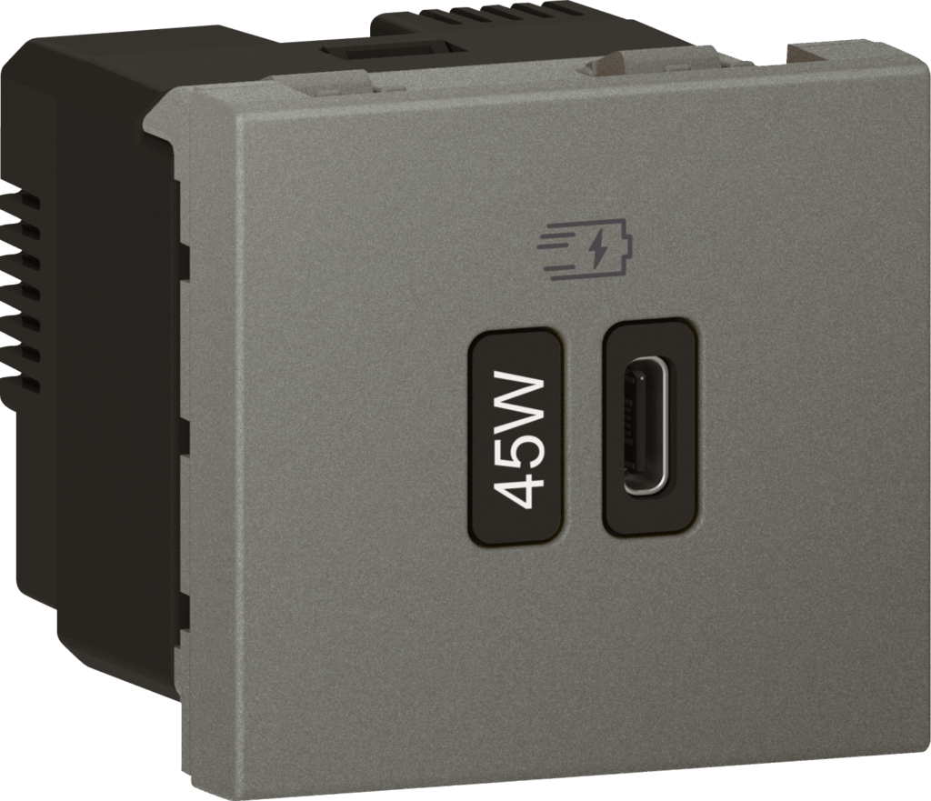 The modules fit into standard Arteor support frames and plates and are available in finishes including white, magnesium, champagne and soft aluminium. Seamless integration of the USB Type-C charger directly into the existing Arteor modular system, allows installation within the same Arteor design lines and finishes as switches, sockets and dimmers in the range.
