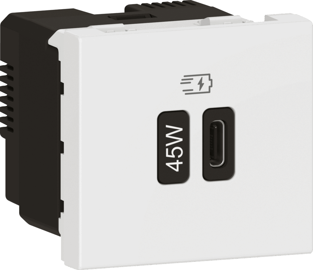 These 45 W USB Type-C modules provide high power delivery and fast charging solutions for residential, commercial and hospitality installations, where users expect convenient access to fast charging, without the need for bulky adapters.