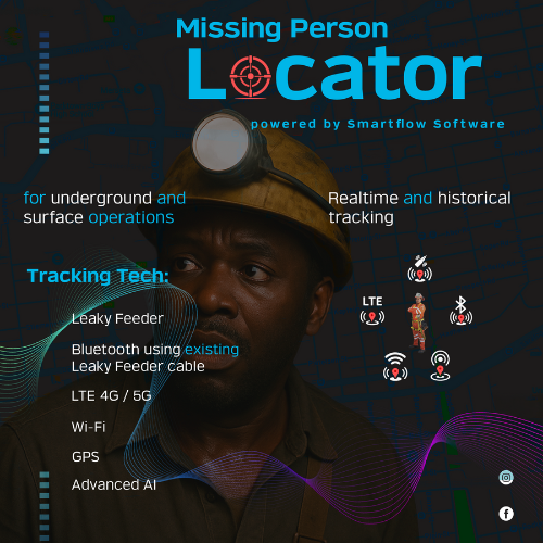 A component of the overall SmartFlow™ suite, the Missing Person Locator module interconnects with other operational systems such as environmental monitoring, power reticulation, conveyor systems, and telemetry with industry standard open communication protocols. This ensures a holistic view of mining operations whilst prioritizing safety and sustainability.