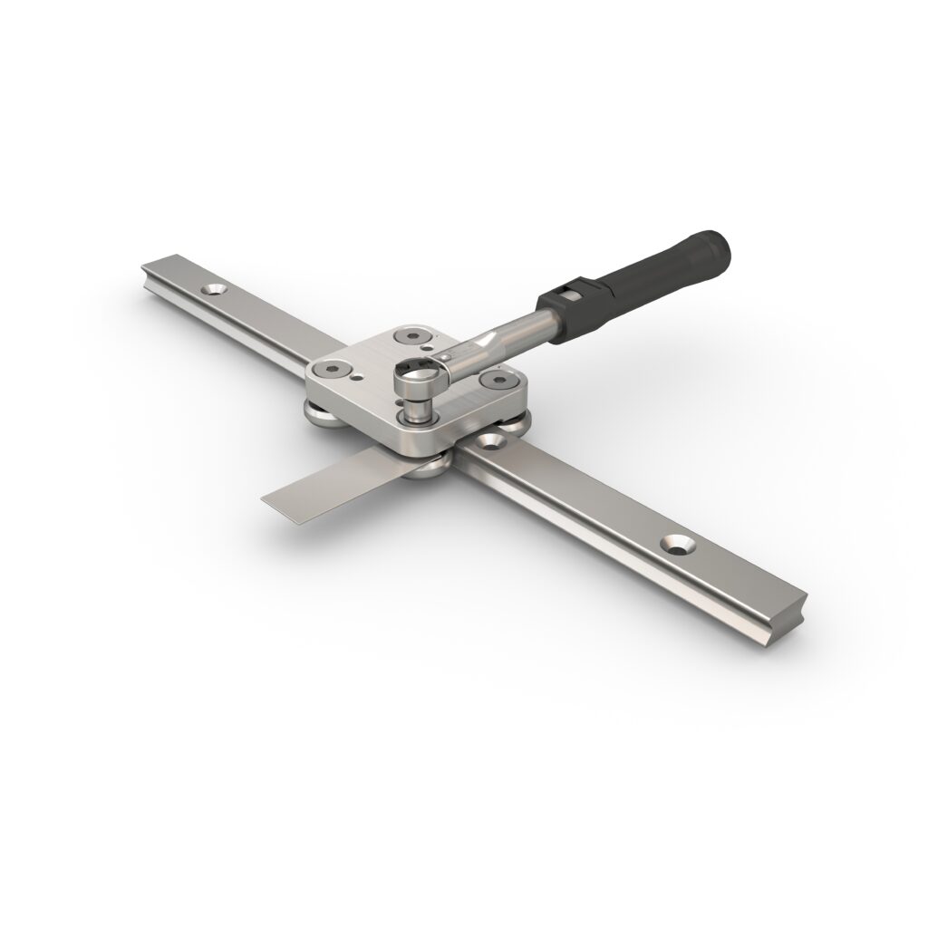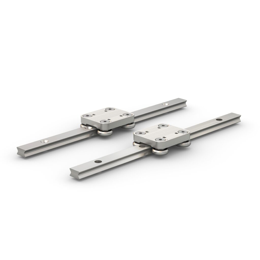 The Rollon MiniRoller Rail delivers a compact, roller-bearing linear guide system with induction-hardened raceways (58–62 HRC) and preload-adjustable stainless-steel rollers. This configuration ensures smooth, quiet travel and minimal backlash under moderate loads. Misalignment tolerance supports installation of less-than-perfect mounting surfaces, while the slider body and rollers are manufactured from Stainless Steel to resist rust and chemical attack. The rail itself is nickel-plated and hardened to withstand mechanical shock and caustic cleaning fluids.