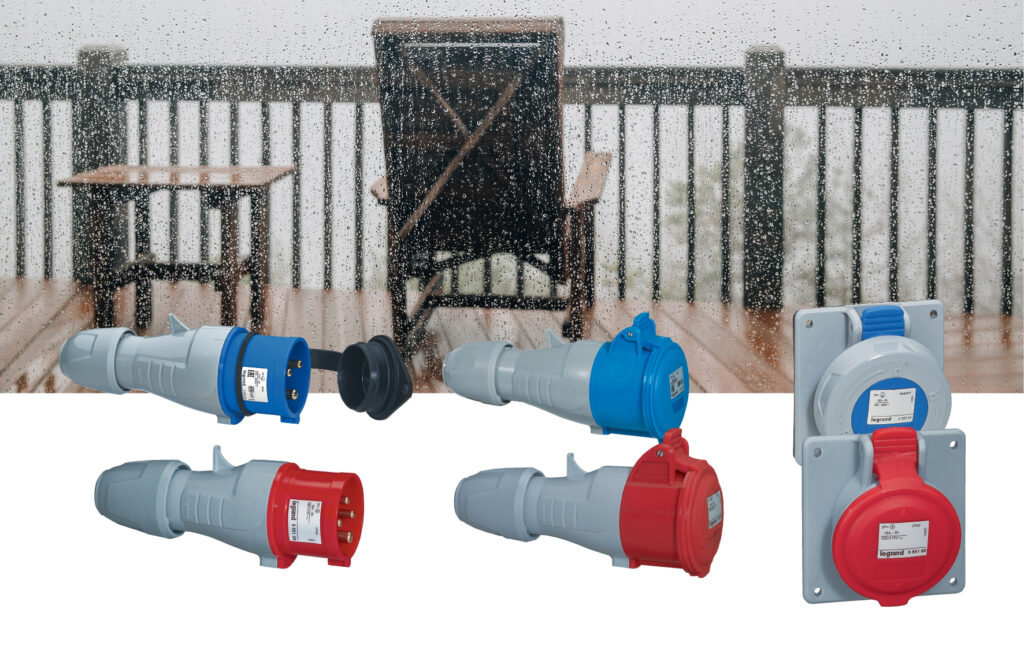 Mobile and panel-mounting sockets for indoor and outdoor use have an IP44 protection rating, safeguarding against the ingress of water. For harsher conditions, Legrand specialists recommend IP66/67/69 units that can withstand temporary immersion in water during heavy rainfall or flooding. Straight plugs with screw connections are offered from 16 A to 125 A, supporting voltages of 100 to 500 V~ at 50/60 Hz.