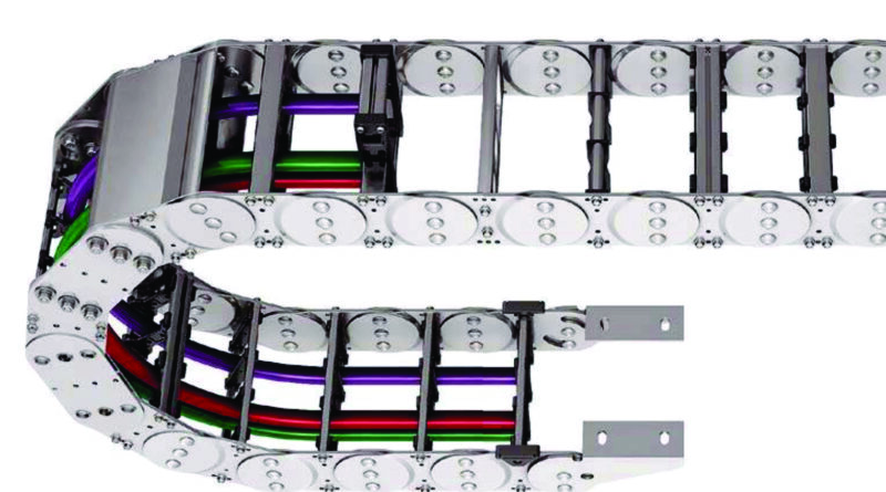 Also in the range is the Steel-Line series that includes lightweight cable carriers and robust units, offering reliable service for extended periods, particularly in environments where large amounts of fine, abrasive media are generated. Rust-free steel band covers are available to protect routed cables against influences like steel and aluminium swath and chips, wood and plastic chips and other industrial aggregates. Depending on the application, either screwed or riveted connections are used.