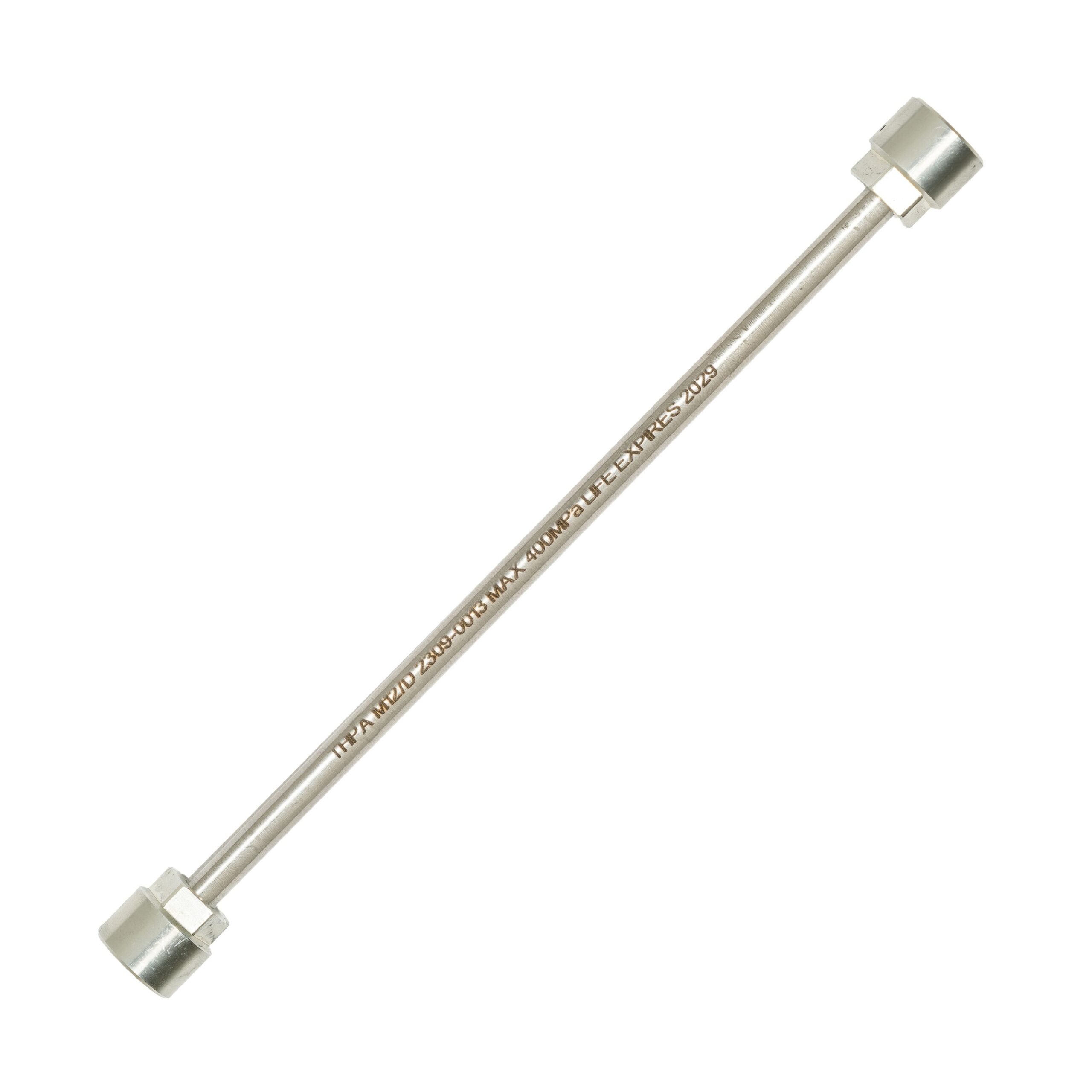 The smart design of the THPA rigid pipes ensures a simple, easy and fast installation process: The THPA rigid pipes can be connected to the application using the appropriate adapter nipple type G1/4 and G3/4 (with 400MPa (58 000psi) maximum working pressure) and G1/8 with 300MPa (43 500psi) maximum working pressure). Once the adapter nipples are screwed into the application, the rigid pipe is then connected to it with a swivel collar. The other free end of the pipe is connected via a swivel collar to a high-pressure quick connection nipple and a quick connection coupling and is finally connected, via a high-pressure hose, to a high-pressure pump or oil injector.